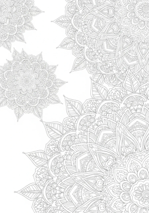 An intricate mandala design filled with floral patterns and delicate line work, offering a peaceful and meditative visual experience