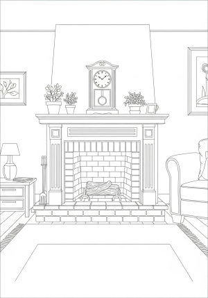 Fireplace Coloring Page