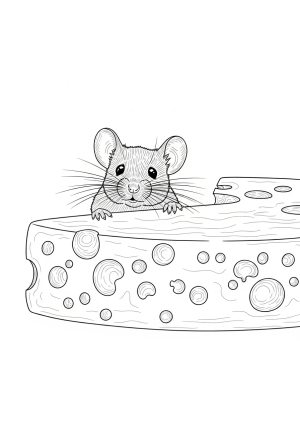 A curious mouse peeking out of a cheese wheel with detailed patterns and textures.